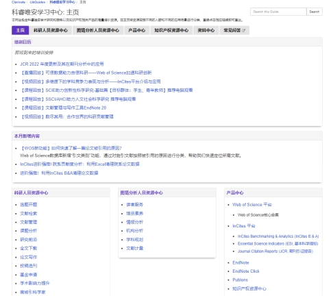 更多关于数据库使用诸如提高科研效率,选刊投稿,查找前沿,自科社科基金申请方面的技巧以及如何使用科研绩效与学科分析工具,请参照科睿唯安资源学习中心大量免费课程:https://clarivate.libguides.com/china